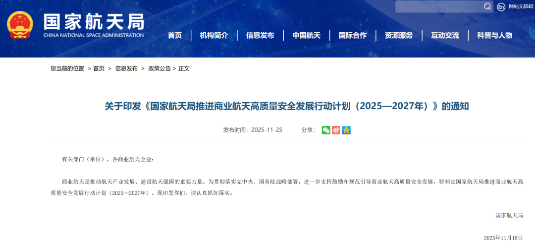 再往前看,国度航天局2025年11月印发的《鼓吹生意航天高质地安全发展行为筹画(2025—2027年)》明确提倡,要将生意航天纳入国度航天发展总体布局,加速酿成航天新质分娩力。